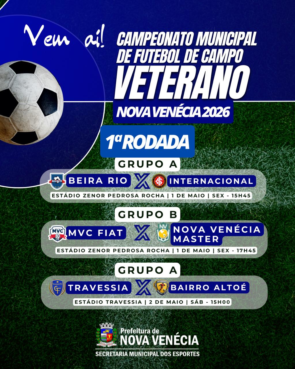 A bola vai rolar nesta sexta-feira, dia 1º, com o início do Campeonato Municipal de Futebol de Campo – categoria Veterano, em Nova Venécia. Esta é a primeira vez que o município realiza uma competição oficial voltada exclusivamente para atletas veteranos.