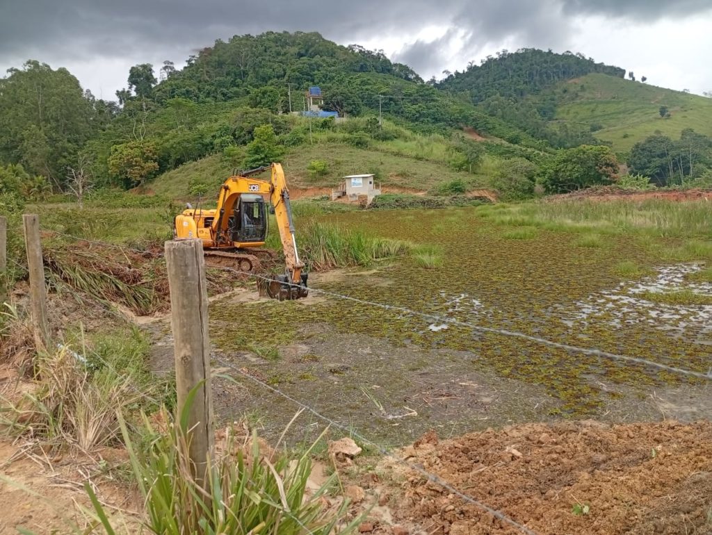 A ação foi realizada com o apoio de uma escavadeira, utilizada para retirar o excesso de vegetação, sedimentos e outros materiais acumulados ao longo do tempo, que podem comprometer a capacidade da represa.