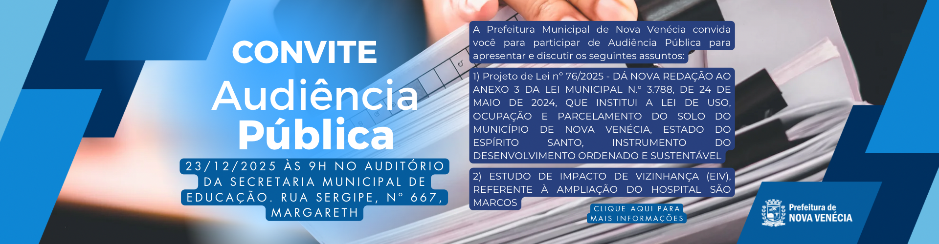 Planejamento Audiência Pública debate ordenamento urbano e ampliação do Hospital São Marcos em Nova Venécia 23 de dezembro de 2025