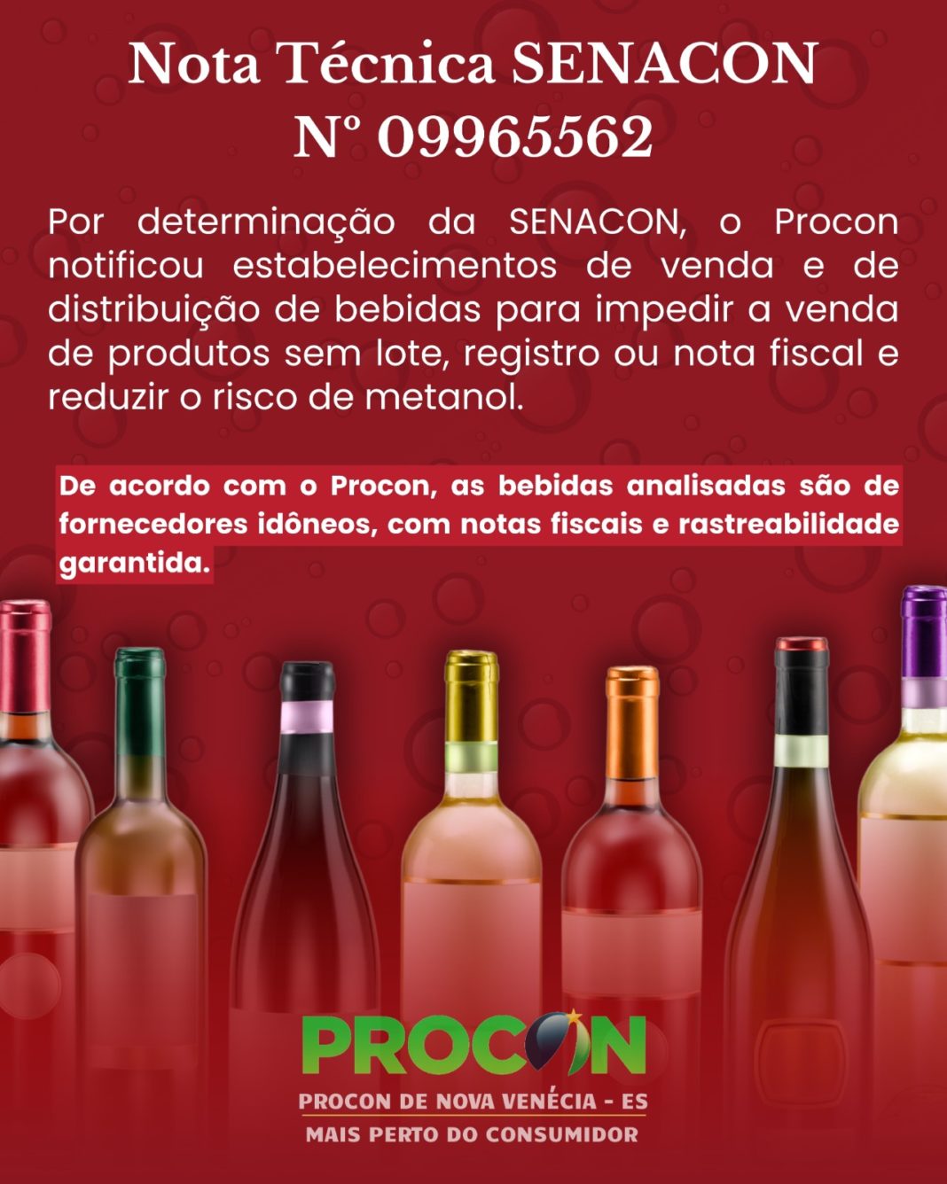 A Secretaria Nacional do Consumidor (SENACON) publicou uma Nota de Orientação nº 09965562 devido ao risco sanitário causado pela adulteração de bebidas alcoólicas com metanol. O documento mobiliza o Sistema Nacional de Defesa do Consumidor e reforça recomendações a fornecedores, estabelecimentos comerciais e consumidores, com foco na prevenção, fiscalização e proteção da saúde pública.