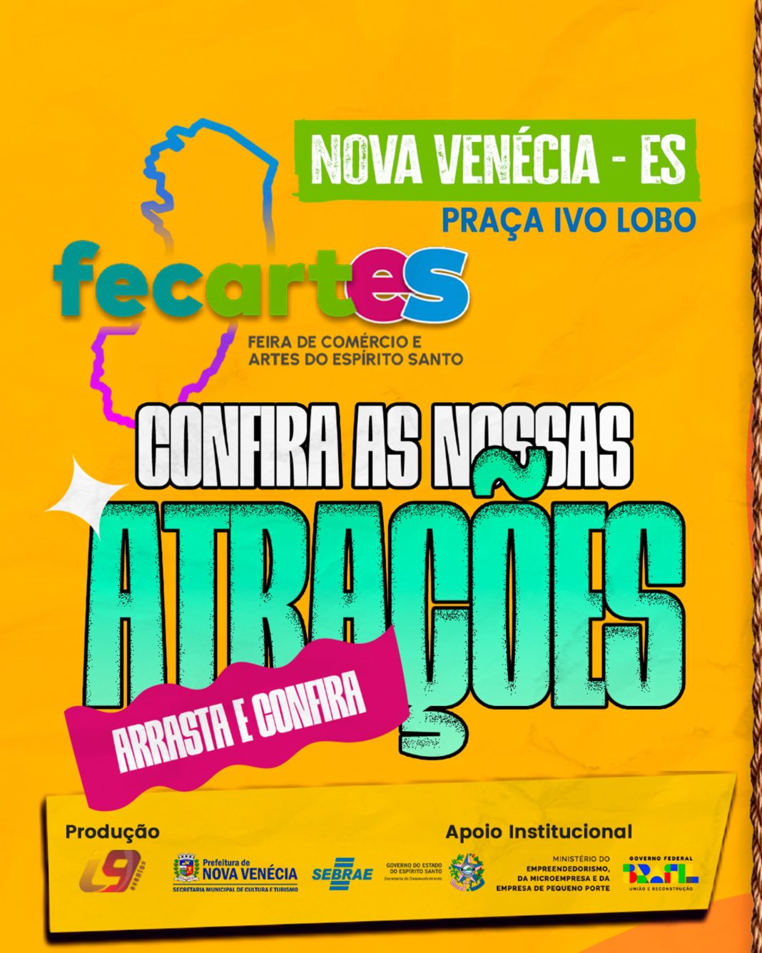 Começa hoje, sexta-feira (6), a FECARTES (Feira de Comércio e Arte do Espírito Santo) em Nova Venécia. O evento promete movimentar o município com uma programação especial de cultura, negócios e entretenimento ao longo do fim de semana.