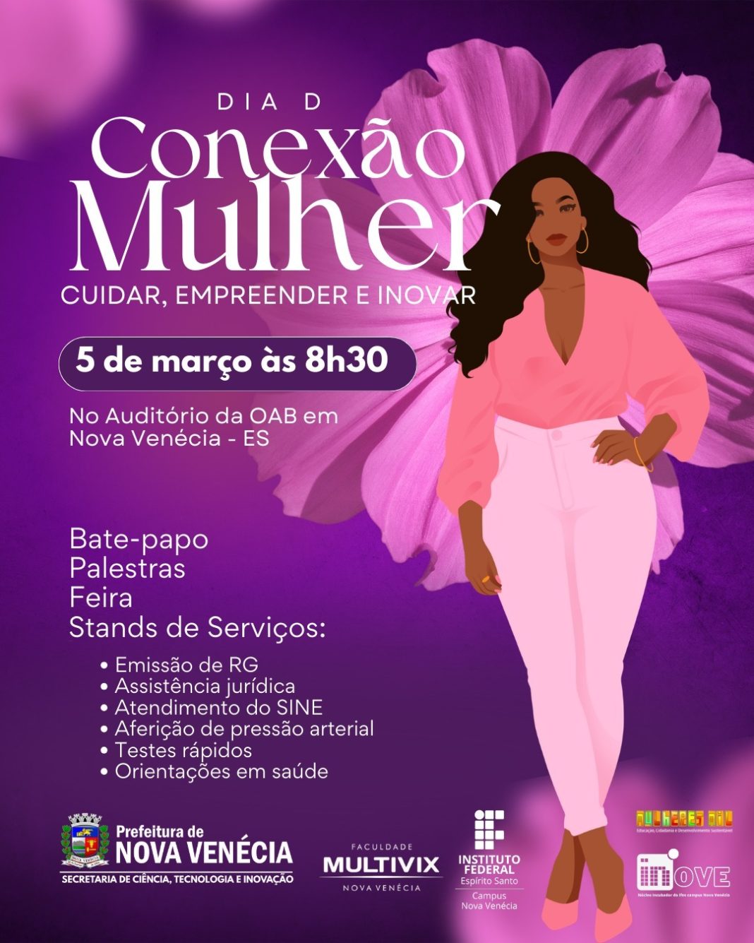 O Conexão Mulher é uma realização da Prefeitura de Nova Venécia, por meio da Secretaria de Ciência, Tecnologia e Inovação, em parceria com a Faculdade Multivix. Todas as mulheres estão convidadas a participar.