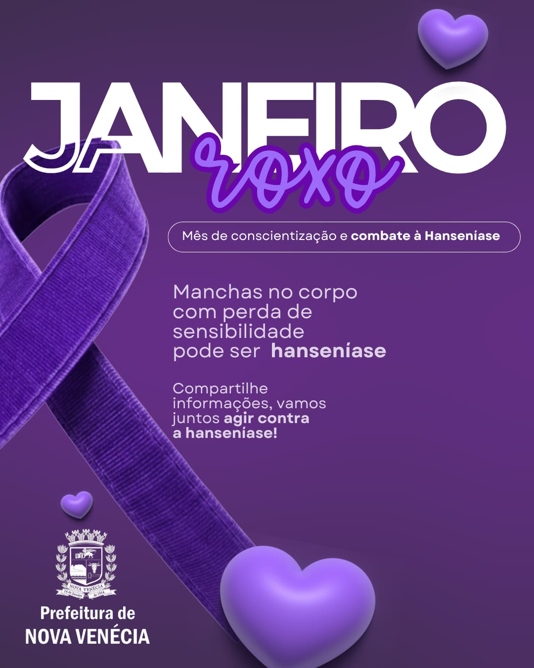 Durante o mês de janeiro, a Prefeitura de Nova Venécia, por meio da Secretaria Municipal de Saúde, reforça as ações de conscientização sobre a hanseníase, destacando a importância do diagnóstico precoce, do tratamento adequado e do combate ao preconceito relacionado à doença.