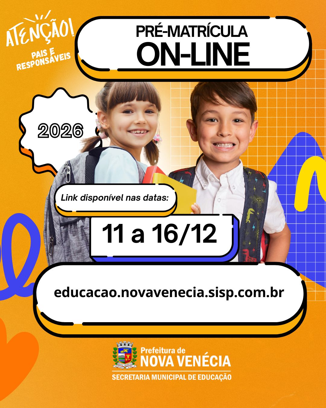 Sem filas, sem espera e sem a necessidade de enfrentar longas horas nas escolas, a Prefeitura de Nova Venécia, por meio da Secretaria Municipal de Educação, dará início no período de 11 a 16 de dezembro às matrículas on-line para a rede municipal de ensino, marcando um novo momento de modernização e praticidade no acesso à educação no município.